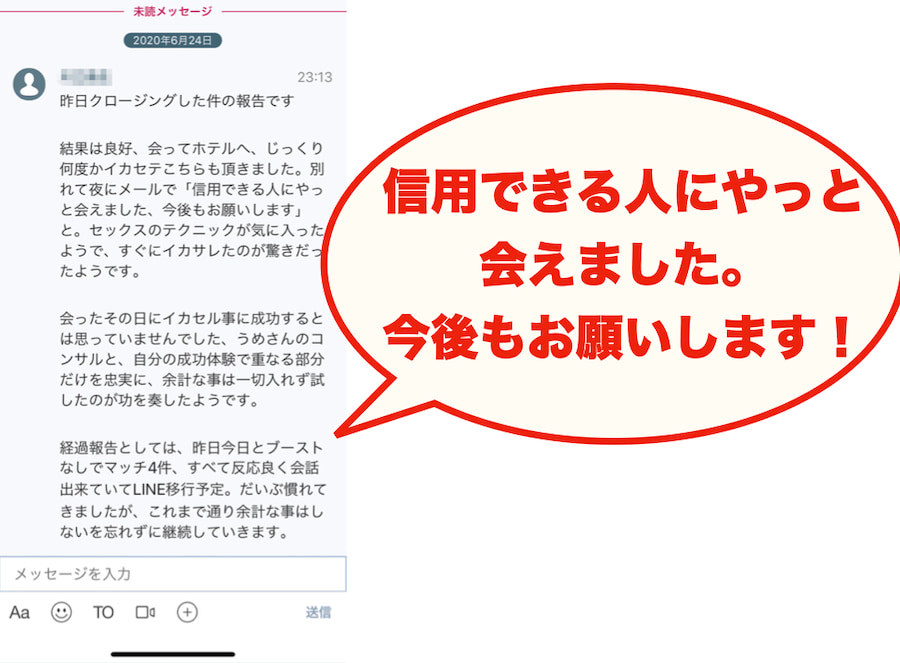 実際に童貞からノウハウを実行し、すでに直ホテルが決まった人。